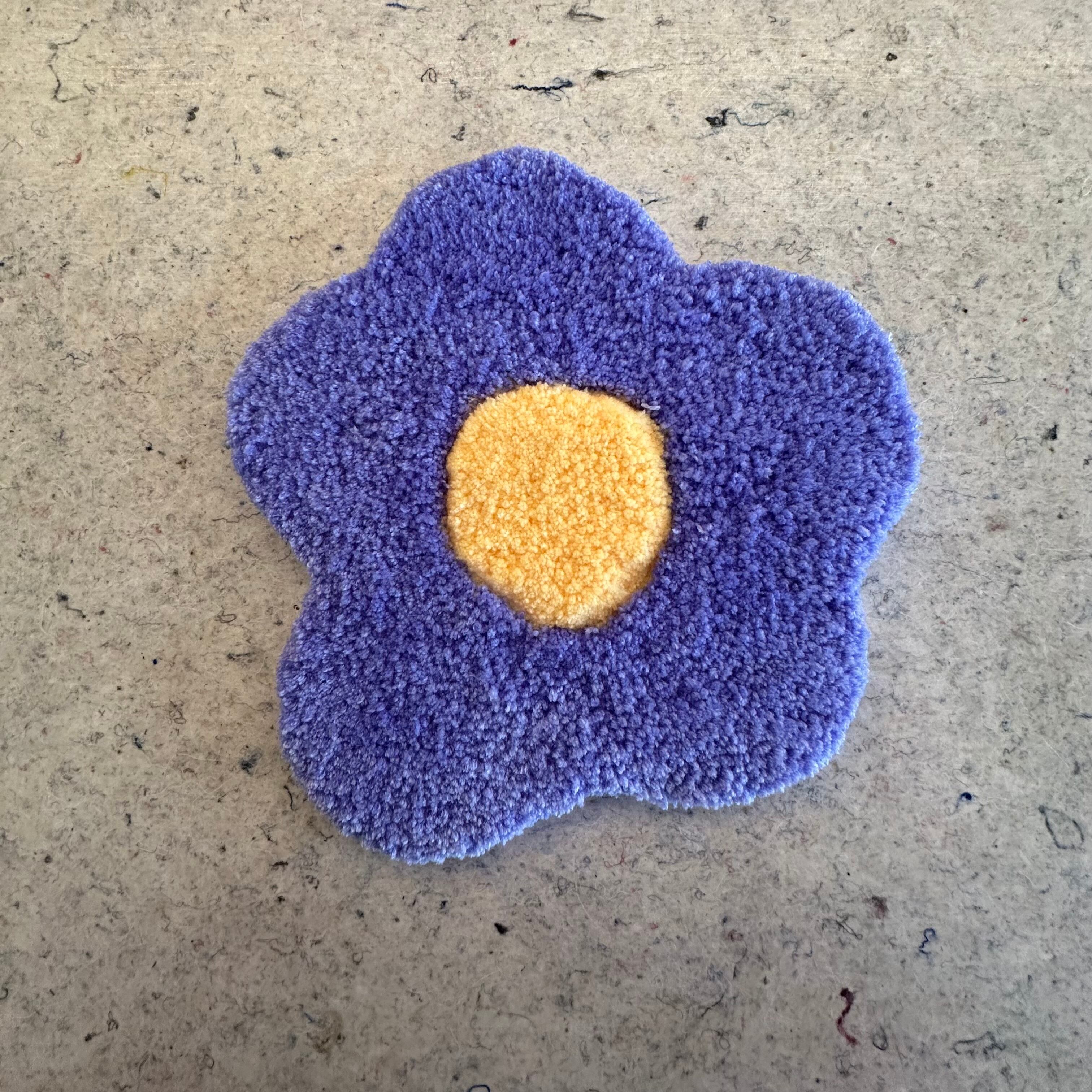 らくがきのようなフラワーモチーフのハンドメイドラグマット。
