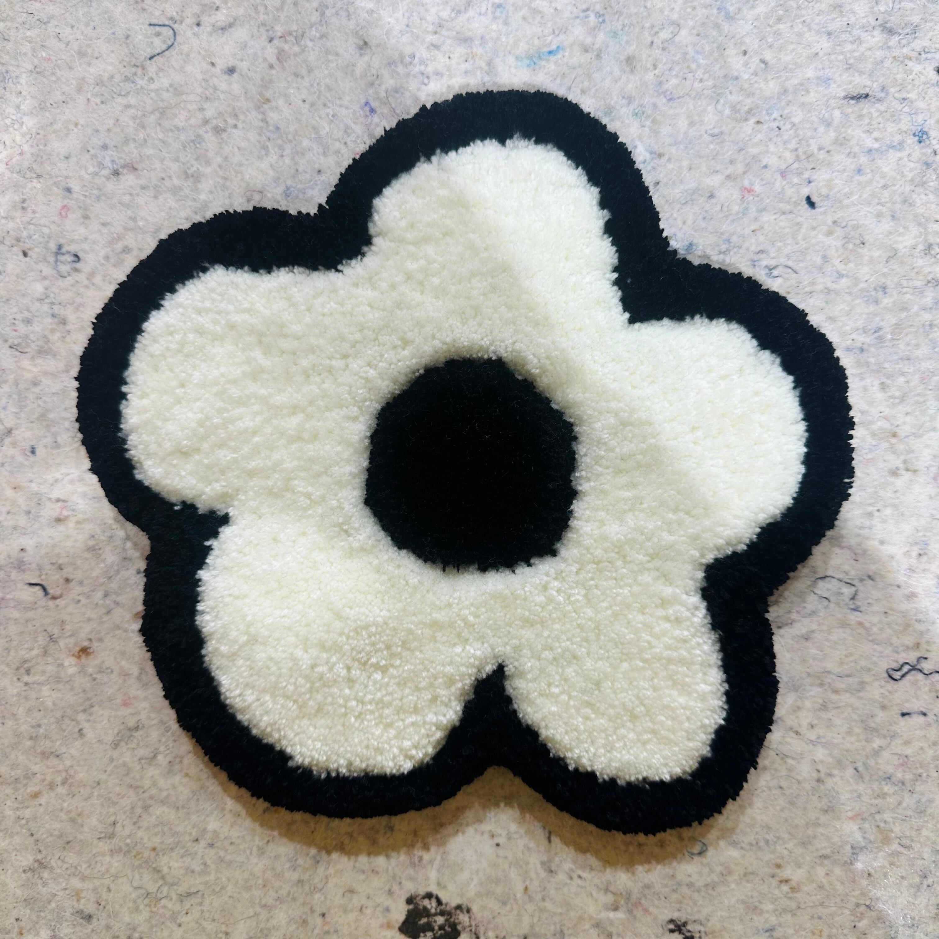 2色のシンプルフラワーモチーフのハンドメイドラグマット。