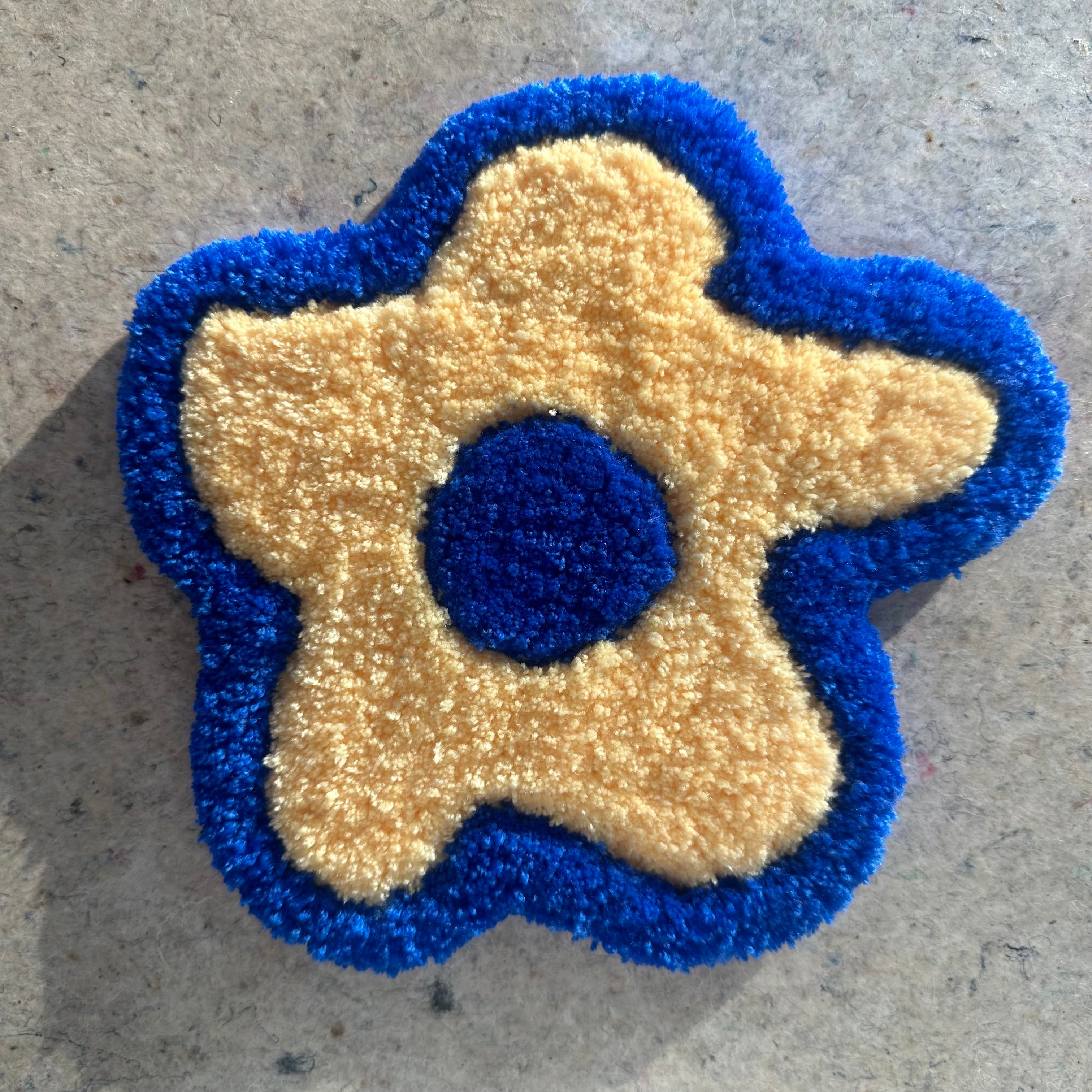 2tone flower(blue×yellow)/sew in | artworkstudio sew in|タフティング・オリジナルラグ・アート体験【新潟】