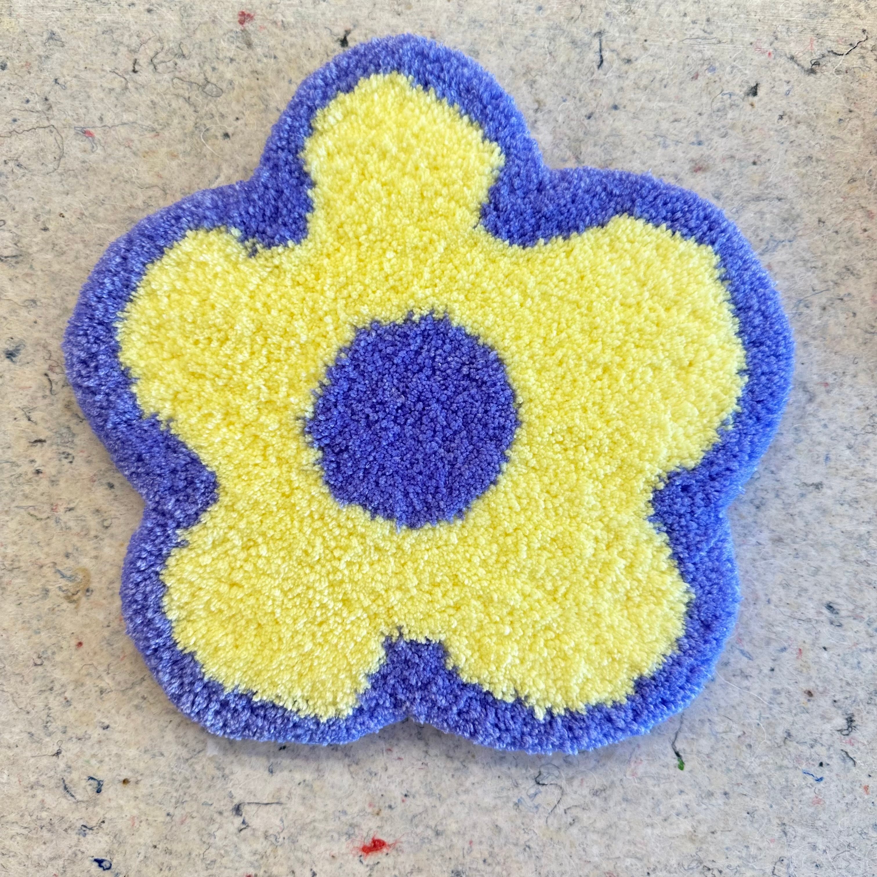 2色のシンプルフラワーモチーフのハンドメイドラグマット。