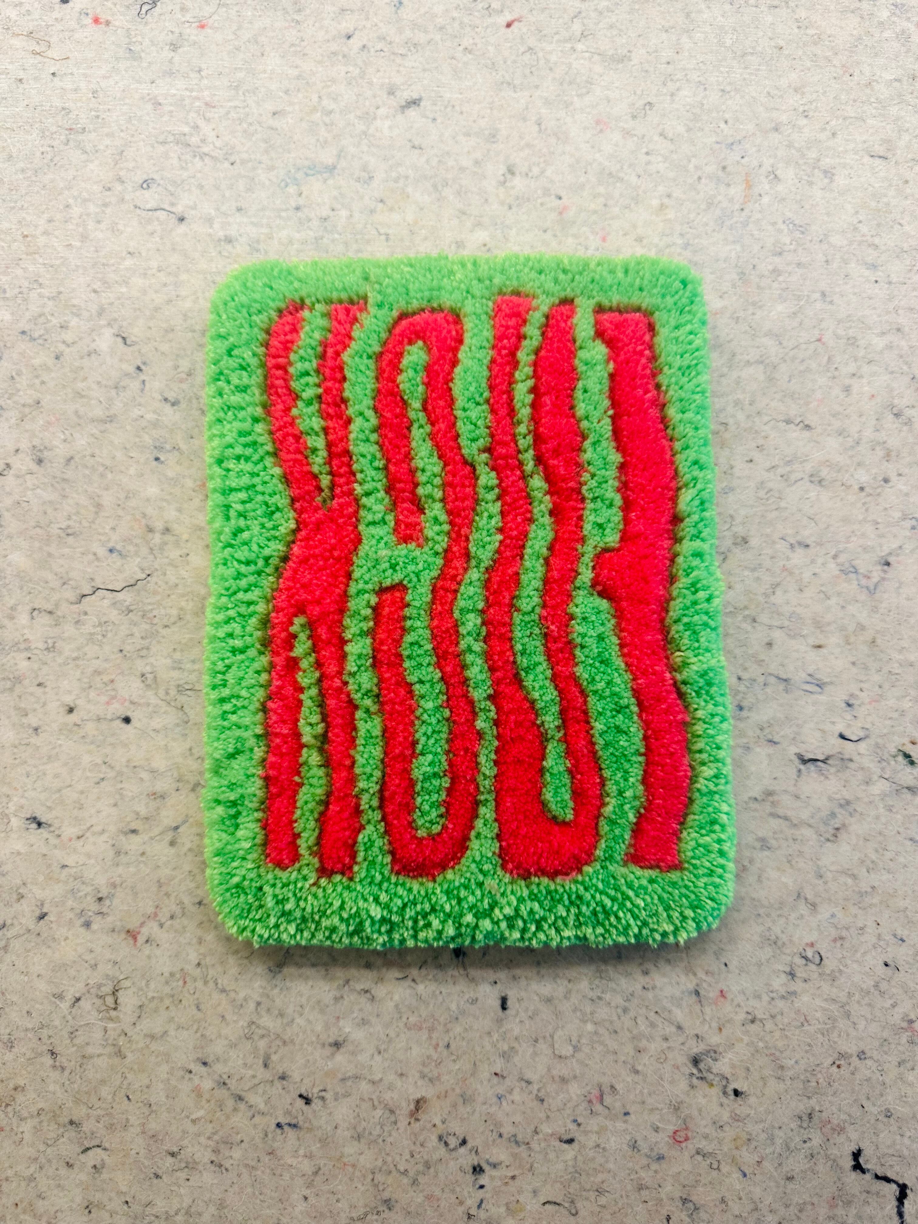 表に出したいF**Kを裏に隠して反転させたデザイン。裏腹な気持ちを表したハンドメイドラグマット。
